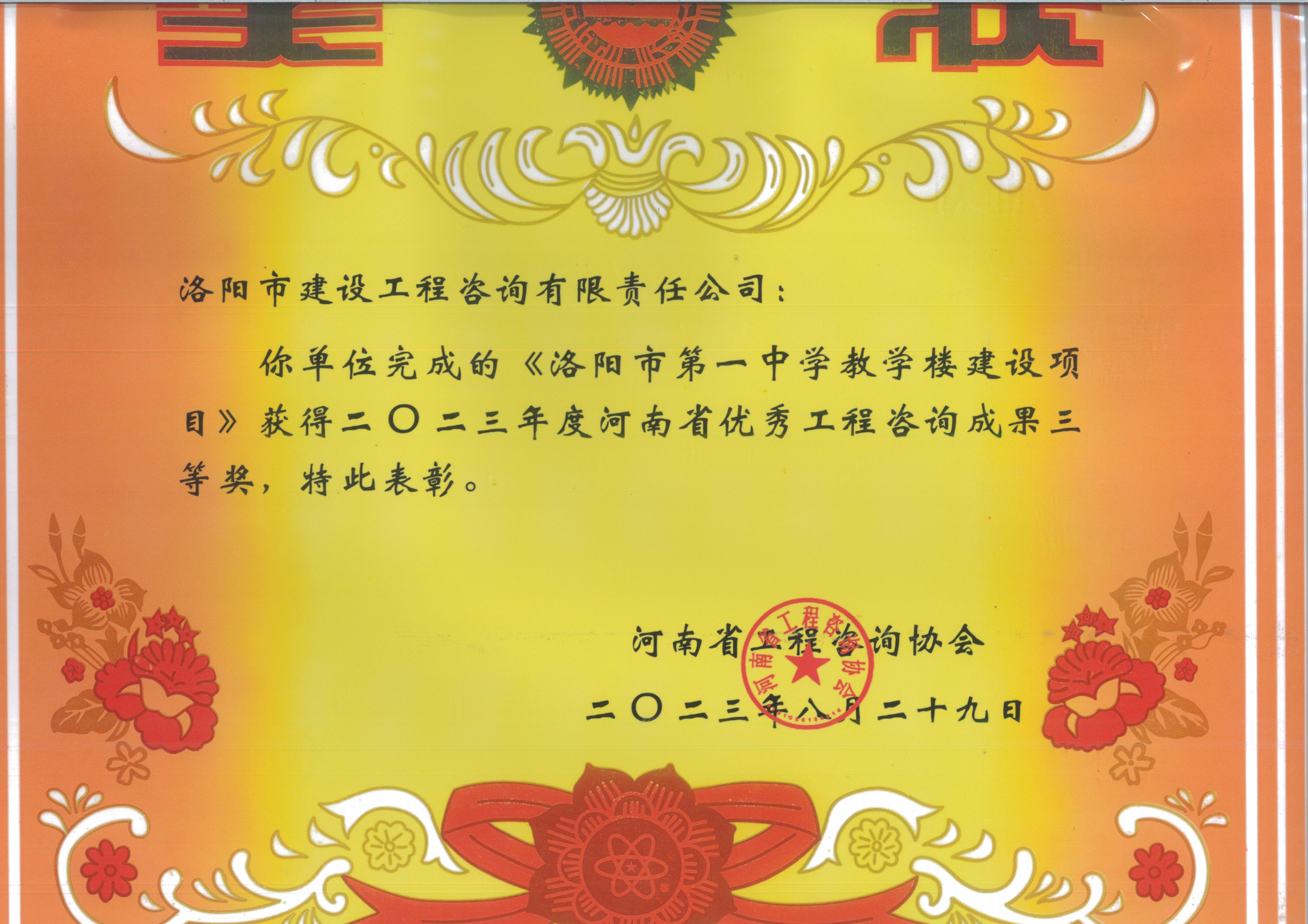 2023年河南省優(yōu)秀工程咨詢三等獎